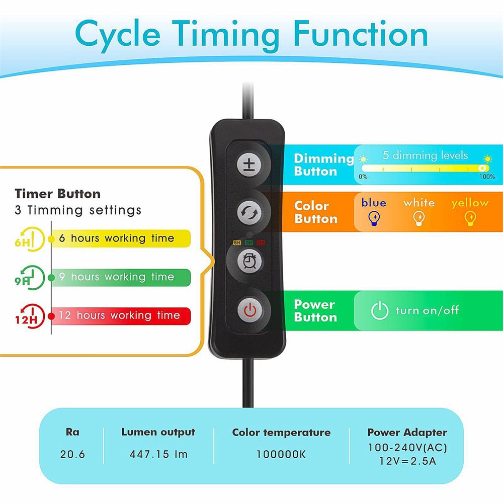 3 timing options – the internal light timer allows you to choose the light running for 6H, 9H, or 12H.