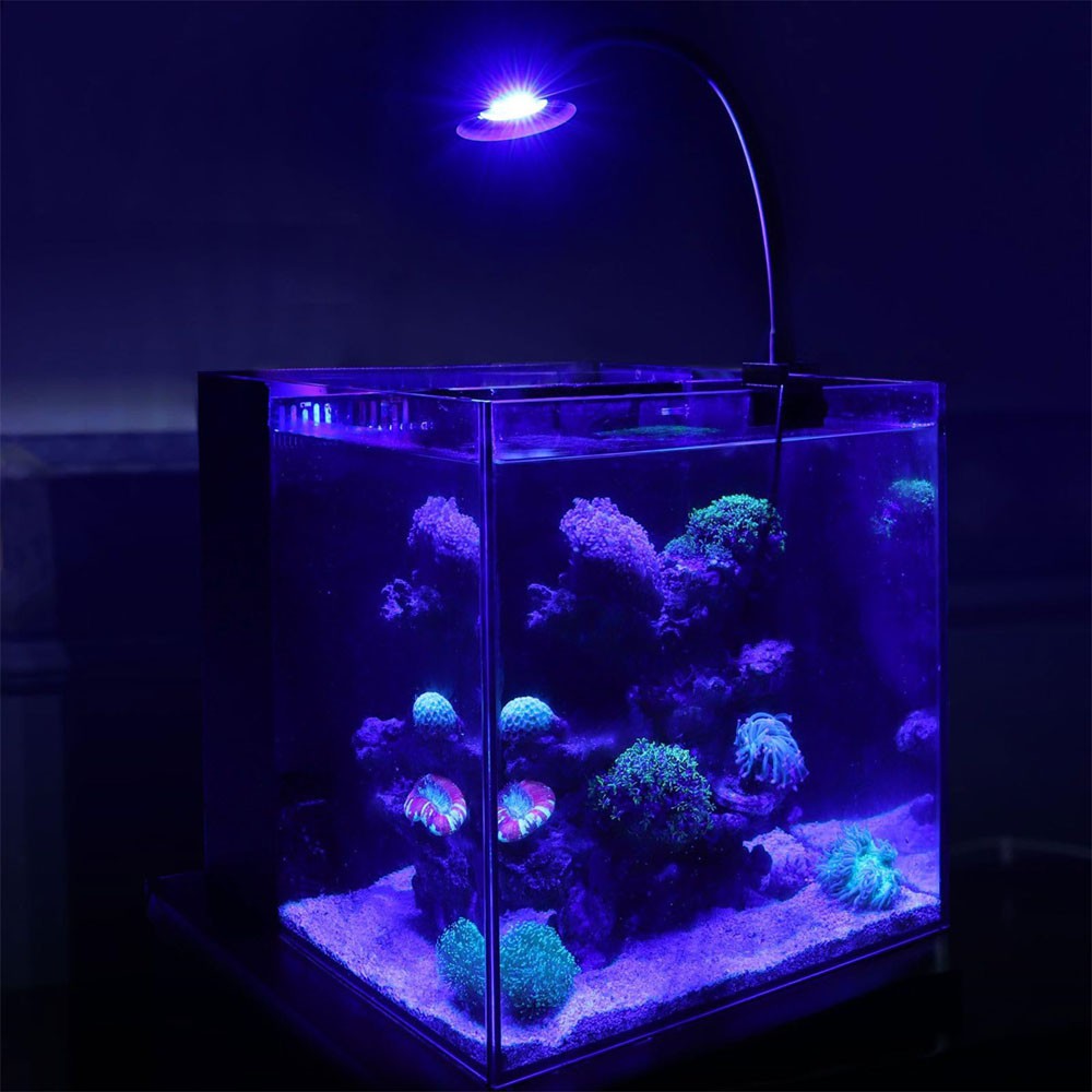 The blue light promotes the production of vitamin D3, which helps corals absorb calcium and make them show more vivid colors; The U-V light can promote plant defense mechanisms; The purple light can be used to protect fish growth; The white light and red light help the corals grow faster.