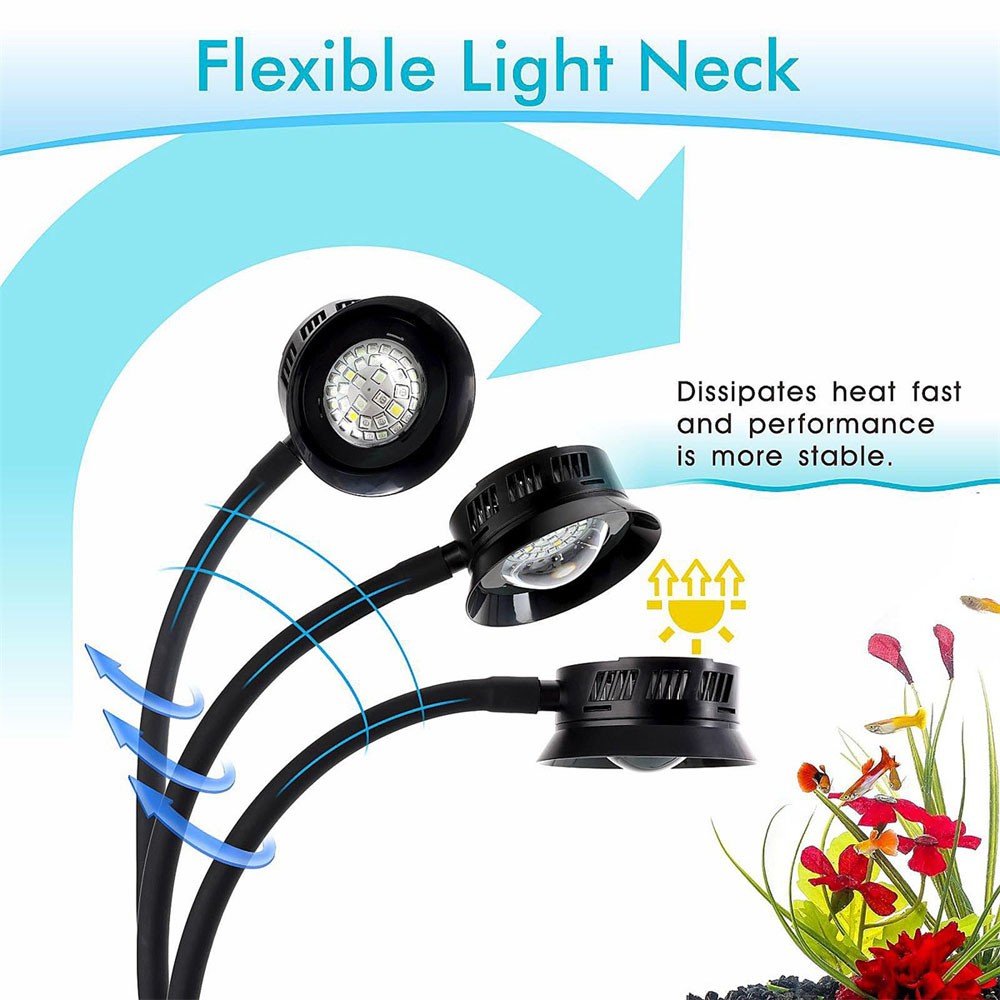 The marine LED lights come with a special anti-rust design and a flexible metal soft arm, the light bracket height is 17.7 inches, and you can freely adjust the direction, and rotate up and down, left and right, it is very easy to install the light on a framed or frameless aquarium, but the tank glass thickness should be less than or equal to 1 inch.